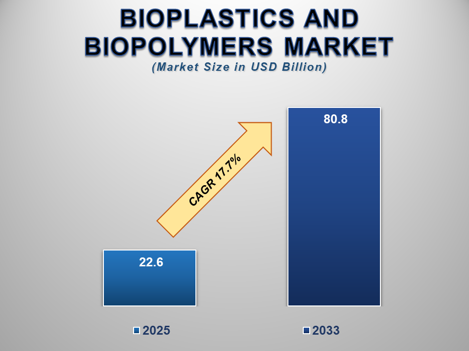 The global Bioplastics and Biopolymers Market was valued at USD 22.6 billion in 2025 and is projected to reach USD 80.8 billion by 2033, growing at a robust CAGR of 17.7% during the forecast period. As sustainability becomes a central theme across industries, bioplastics and biopolymers have emerged as essential alternatives to conventional petrochemical-based plastics. These materials are derived from renewable sources such as corn starch, sugarcane, cellulose, and other plant-based feedstocks and offer various environmental benefits including reduced carbon emissions and enhanced biodegradability.