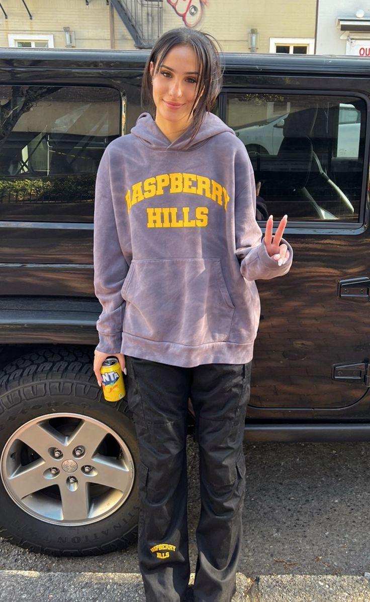 Washed Graphic Hoodies: Known for their heavy, oversized fit and worn-in textures, these hoodies are a staple in the Raspberry Hills collection.